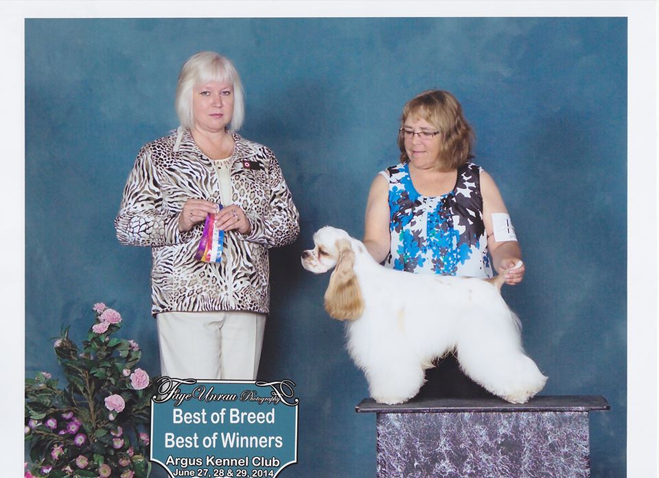 Bentley was shown to his Canadian Championship by his co-owner Peggy Horvath picking up Best of Breed wins on the way! As well Peggy started him to his Grand Championship when she sadly passed away. I picked up where Peggy left off and completed Bentley’s Grand Championship with multiple group placings.