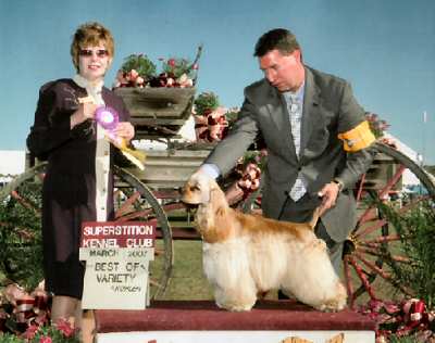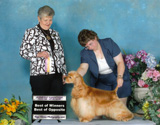Buff · eyes slt/pra clear, hips OFA good. ASC Best of Breed. Multiple U.S. Group Winner, 1st Award of Merit at 2004 Summer Nationals at 9 years of age, sire of 25+ Champions