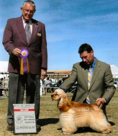 In 4 weekends he won 3 majors and 9 Best of Variety’s. Duncan came to visit Canada in June 2010 and obtained his Canadian Championship in one weekend! He won Best of Breed over a special and went Best of Winners 4 times! Duncan is now in training for his CD title back at his home in Arizona.