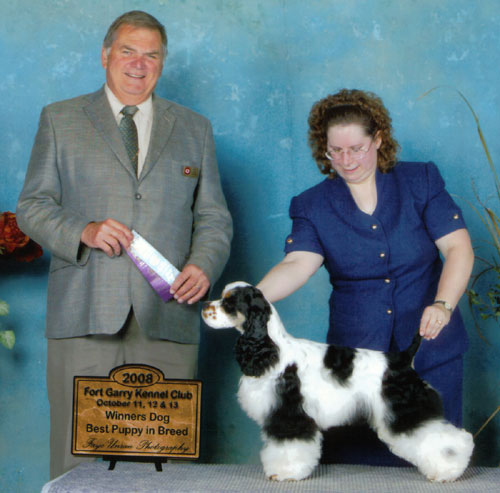 Kerry has produced his first litter of puppies born May 30, 2009! Dam is Can Ch Shaankata’s Peppermint Pie and they are the proud parents of three black & white babies!