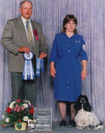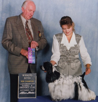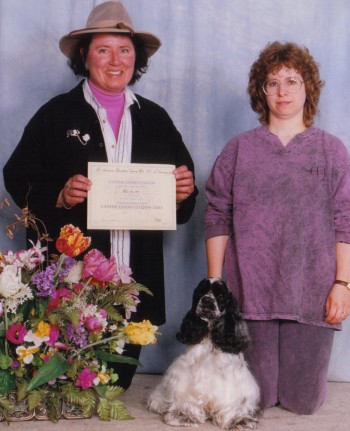 In her first litter of four, the two that were shown easily became Canadian Champions, Can CH Shaankata’s Tequila Terror CGC and Can CH Shaankata’s Aces and Eights. The other two had they been shown could also have easily become champions. Her second litter produced a singleton puppy who became Multi BISS Can/Am CH Shaankata’s Tequila Teaser, the #1 bitch cocker in Canada in 2001 & #6 Cocker.