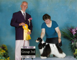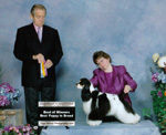 Zeva is a well put together tri bitch with a beautiful head and incrediable movement. Her first time in the ring she won a Group 3rd and Best Puppy in Group for 5 points! All from the junior puppy class.