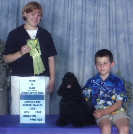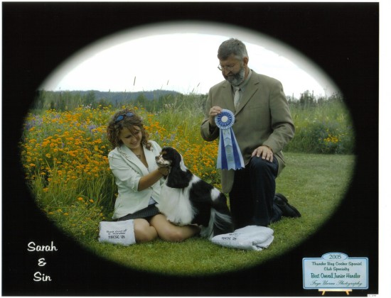 - Sin pictured with junior handler Sarah Baryluk winning the Thunder Bay Cocker Spaniel Club Specialty – Best Overall Junior Handler!